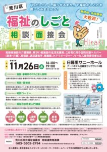 ■主催:荒川区/社会福祉法人荒川区社会福祉協議会/社会福祉法人東京都社会福祉協議会 東京都福祉人材センター