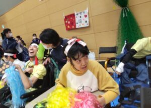10月25日(土)荒川総合スポーツセンターで開催されたハートフル運動会に参加しました。当日は雨模様でしたが、会場は晴天さながら!各施設の応援にも熱が入ります。利用者の皆さんはそれぞれのペースで力を発揮し、パン食い競争や玉入れでは笑顔と歓声があふれていました。