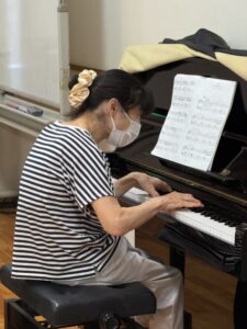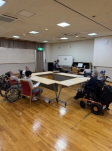 毎月一回、地域で自立生活をしている障がいのある方を講師にむかえ、『夏の過ごし方』や『宿泊訓練でやりたいこと』など利用者さんの関心や挑戦したいことをテーマに意見交換し、人と関わる力を養っています。活動は毎回、ピアノが得意な利用者さんの演奏で始まり、和やかにスタートします。